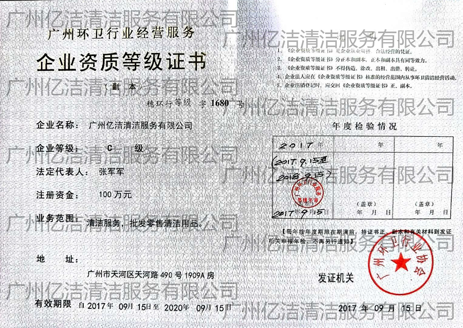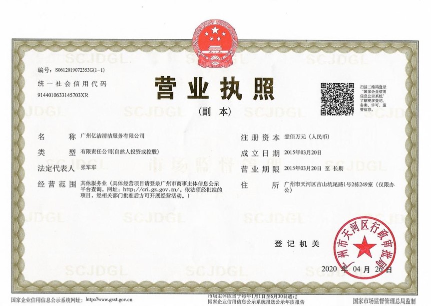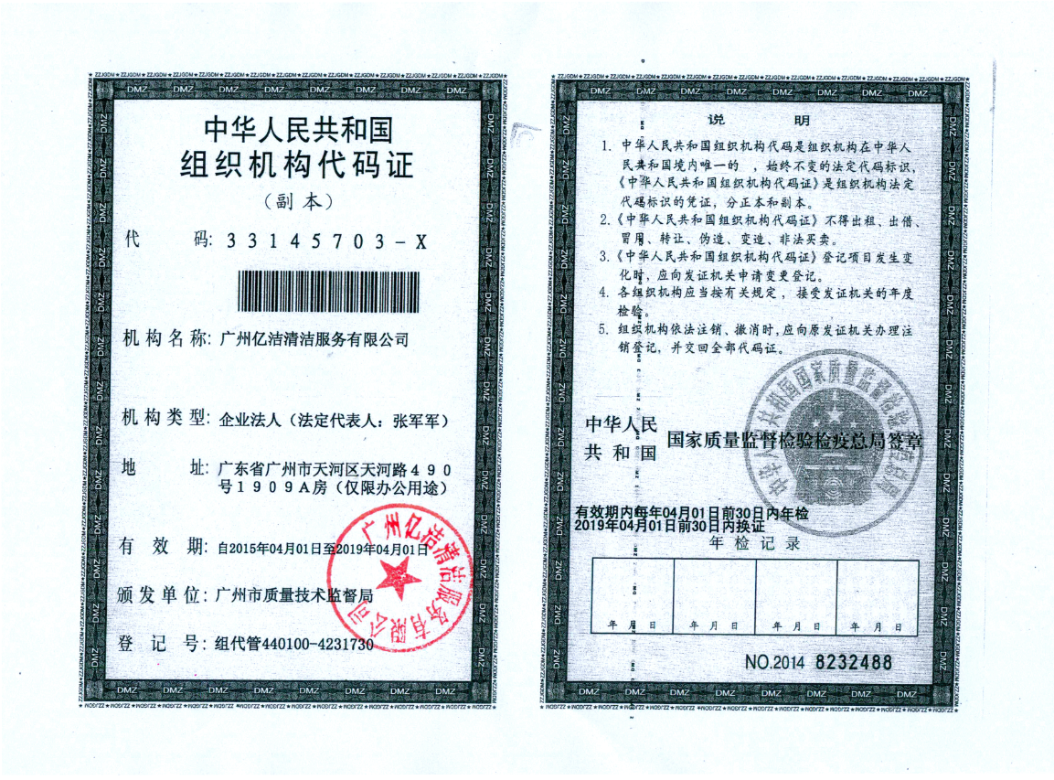廣州億潔清潔服務有限公司是經(jīng)廣州市工商行政管理局批準成立的(注冊資本:100萬元人民幣)。具有獨立法人資質(zhì)。公司成立2015年,公司具備完善的管理體系和高素質(zhì)管理隊伍,擁有特種技術(shù)人員33名,保潔服務人員上萬名,覆蓋廣州市,能及時調(diào)配并快速投入高效運行。我們的每個員工都經(jīng)過公司的嚴格篩選,嚴格培訓,定期培訓后持證上崗以保證服務品質(zhì),保障客戶的權(quán)利,利益,形象等不受損失。 廣州億潔清潔公司是一家設備齊全,技術(shù)強大的綜合型清潔服務公司,為客戶提供完善服務尊定了堅定的基礎。 司于2010年全面推行了ISO9001質(zhì)量管理體系認證和ISO14001國際環(huán)保體系認證。先后獲得廣州高層建筑外墻清洗維修作業(yè)【安全資質(zhì)證書】、【廣州環(huán)衛(wèi)企業(yè)等級證書C級資質(zhì)】、廣州疾控中心頒發(fā)的【四害消殺服務資質(zhì)證】、【空氣治理A級資質(zhì)】、中國石材協(xié)會頒發(fā)的【石材資質(zhì)B級資質(zhì)】等。 廣州億潔清潔服務有限公司致力于打造專業(yè)、實惠、靠譜的保潔服務公司,把專業(yè)的事情交給專業(yè)的我們,您放心! 億潔清潔服務項目: 廣州保潔服務:新建樓宇、別墅、酒店、醫(yī)院、辦公樓、賓館、企事業(yè)單位廠房竣工后開荒及裝修后精細保潔.工程保潔服務。 廣州物業(yè)托管:為廣州市各大企事業(yè)單位、賓館、政府機關(guān)、小區(qū)物業(yè)、酒店及廠房提供專業(yè)化保潔、園林、設施維護等管理服務。 廣州高空作業(yè):高空玻璃幕...[詳情]
